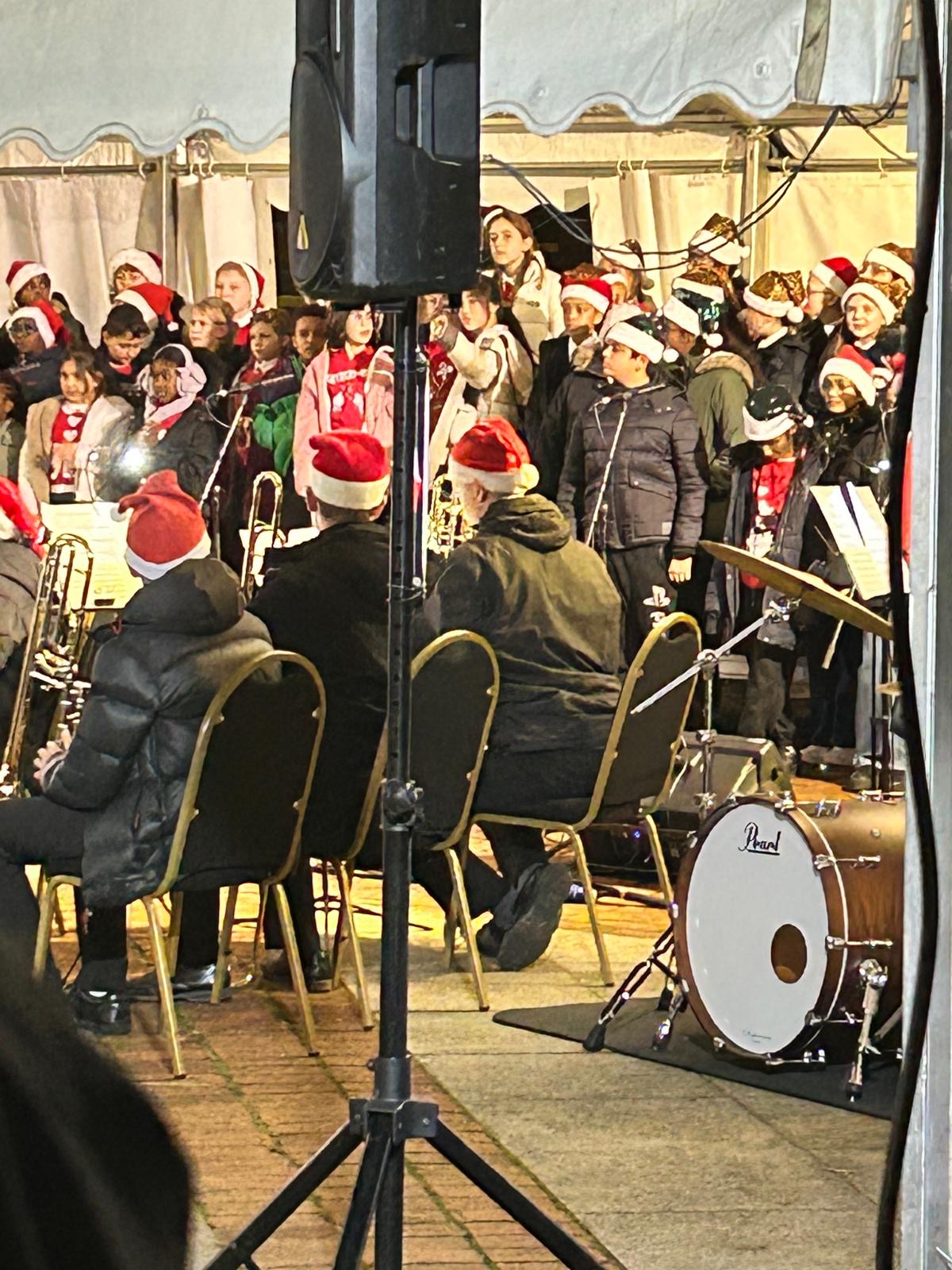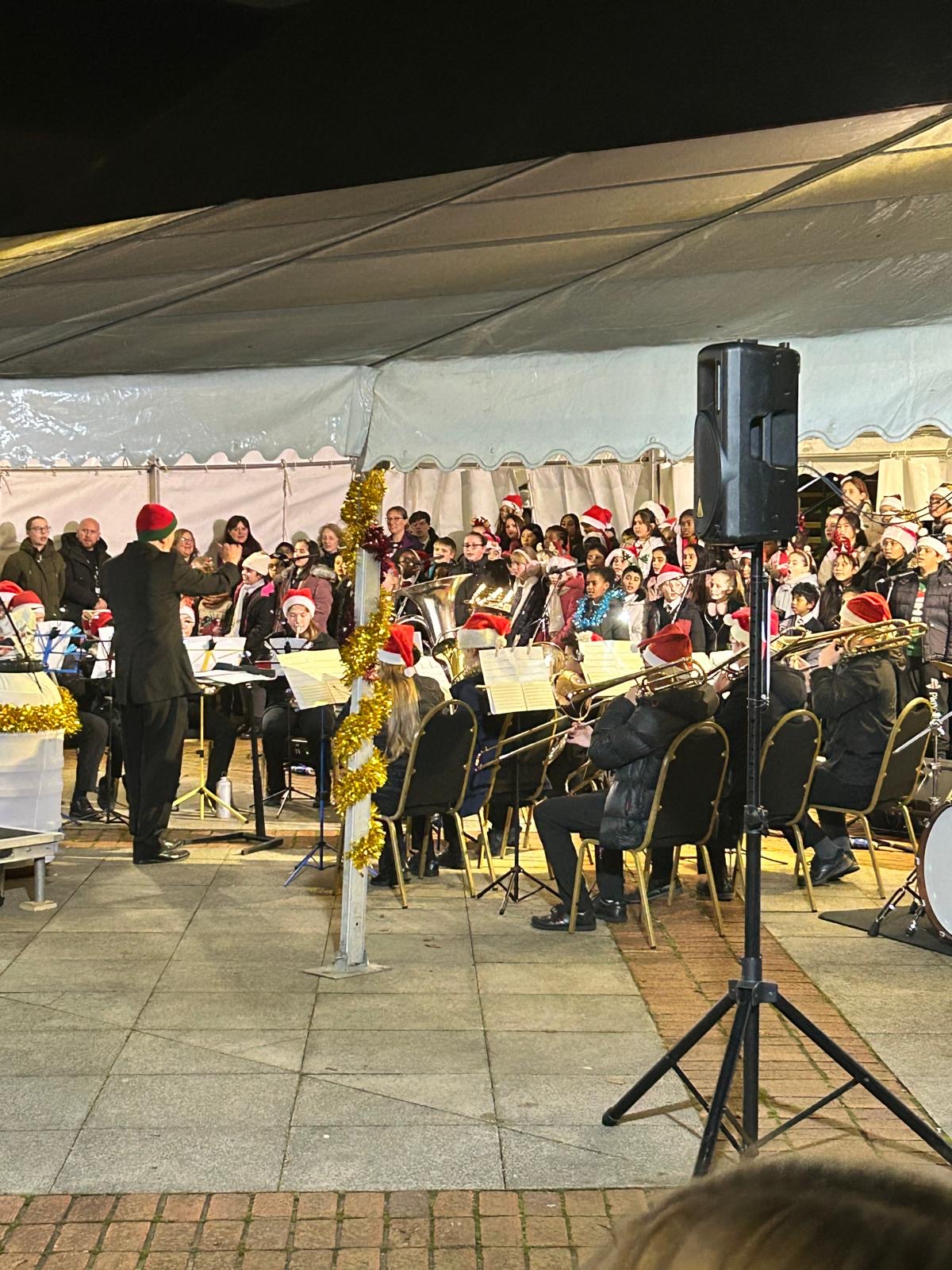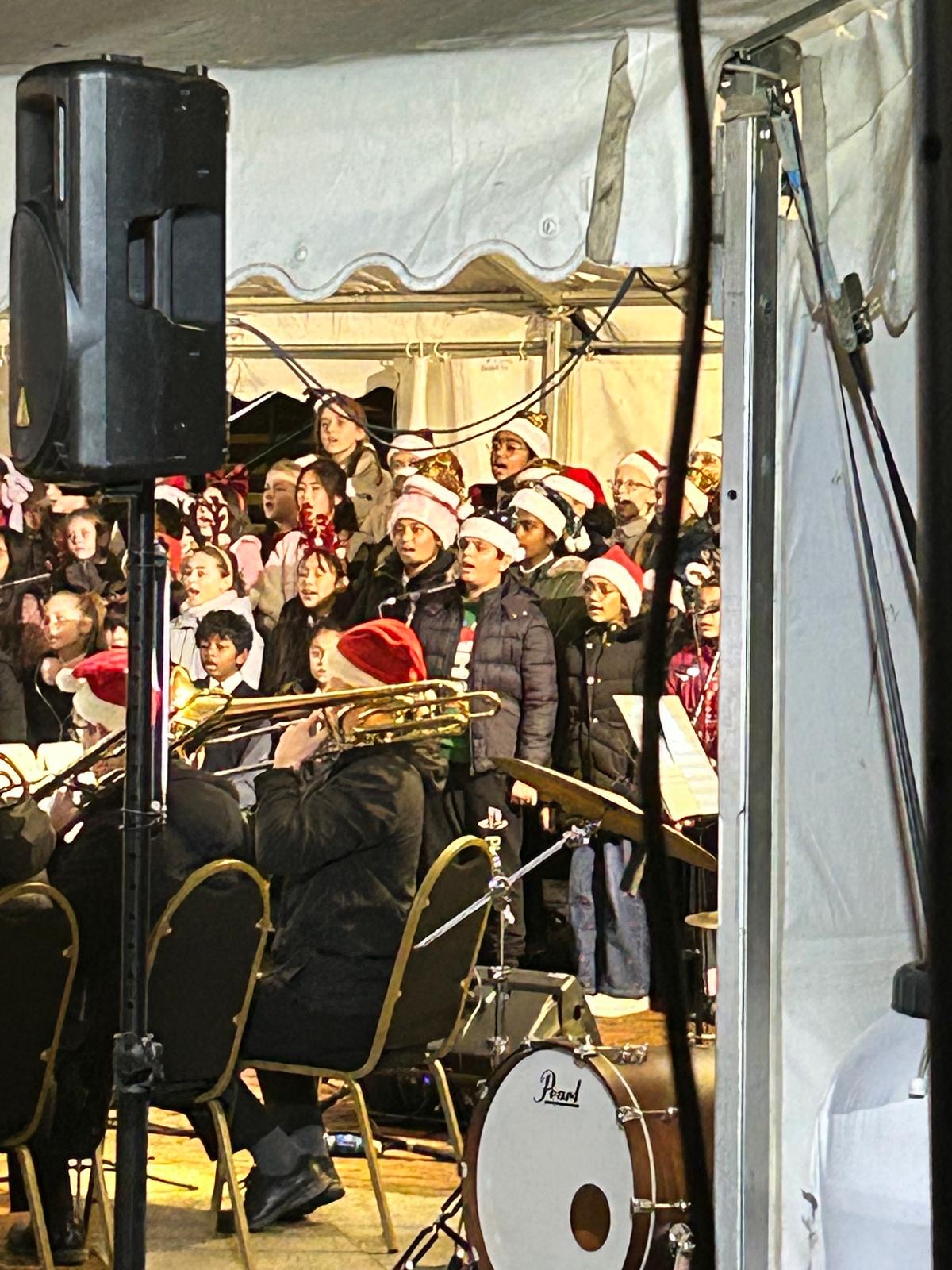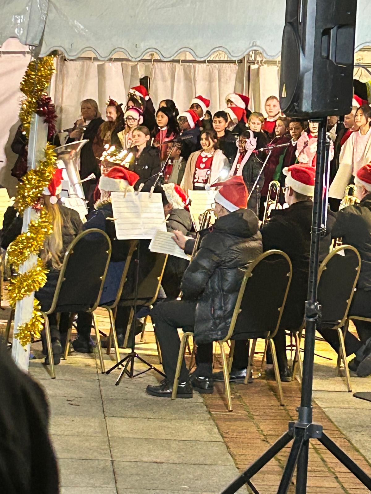 The choir were invited to sing at the turning on of the Uxbridge Town Christmas lights!