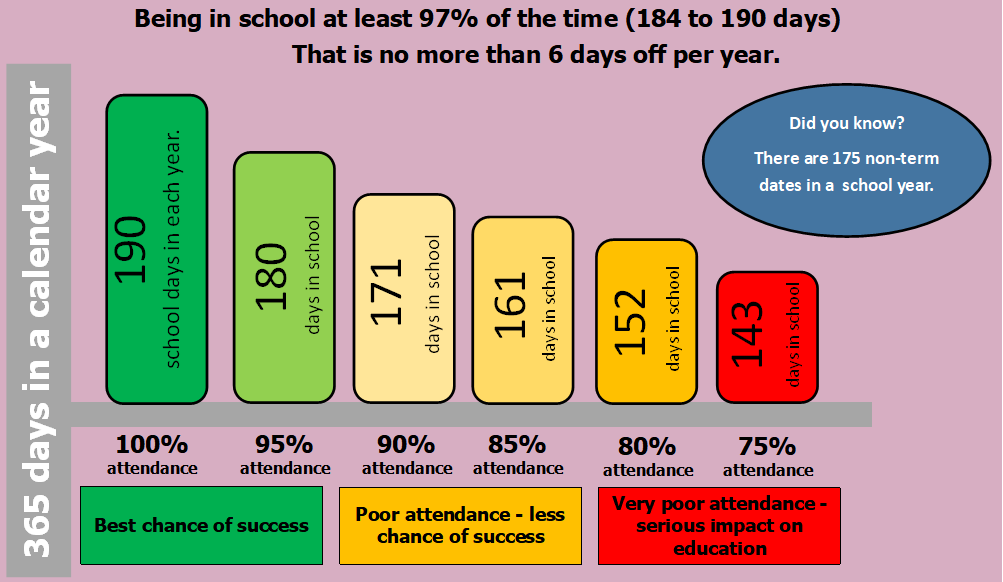 As parents we ask that you are aware that the government expects your child to be in school for a minimum of 96% of the school year.